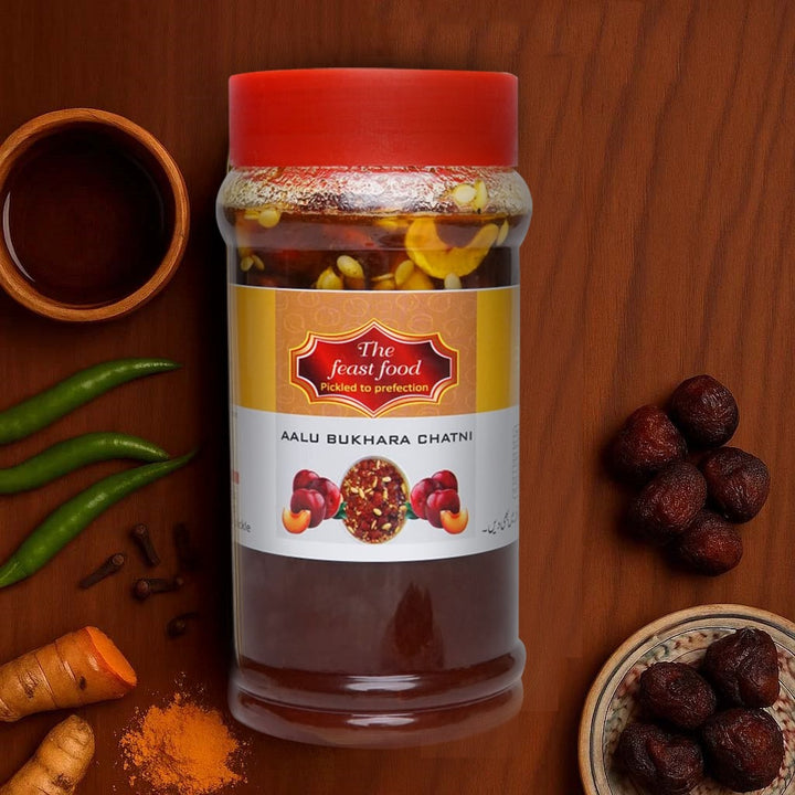 Experience the vibrant, mouth-watering taste of traditional Indian flavors with our Alu Bukhara Ki Chatni! Made from ripe, juicy plums (Alu Bukhara) and a delightful blend of aromatic spices, this chutney offers a perfect balance of sweet, tangy, and spicy notes that will tantalize your taste buds.